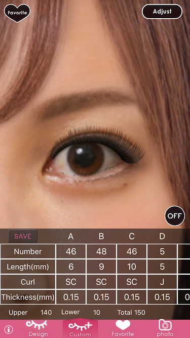 You can freely adjust the number of eyelashes, their length, thickness, and curl.